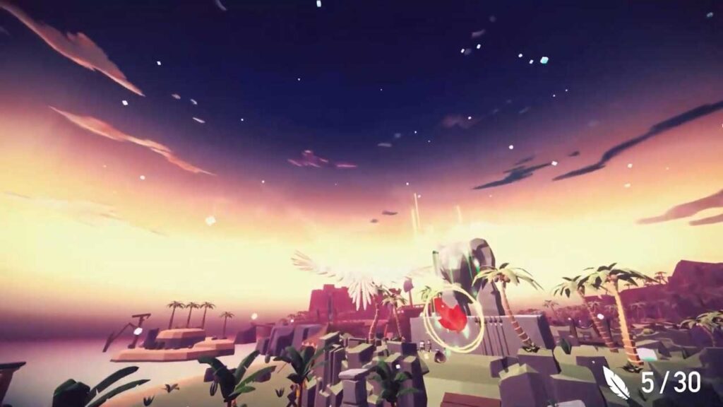 صادقانه بگویم، ما آن را به این شکل ترجیح می دهیم: وقتی به یک پر برخورد می کنید و آن را می گیرید، پر دیگری در فاصله نزدیک ظاهر می شود و به همین علت شما یک نوع مسابقه اسکی هوایی را تجربه می کنید که اهداف آن پشت سر هم ظاهر می شوند و امکان سردرگمی وجود ندارد. به بیان بهتر می گویم در تئوری، شما هرگز در دنیای Aery – Flow of Time گم نمی شوید، زیرا پر بعدی همیشه واضح و آشکار است و می توانید روی پروازهای آرامش بخش تمرکز کرده و از گیم پلی آرام بازی لذت ببرید.