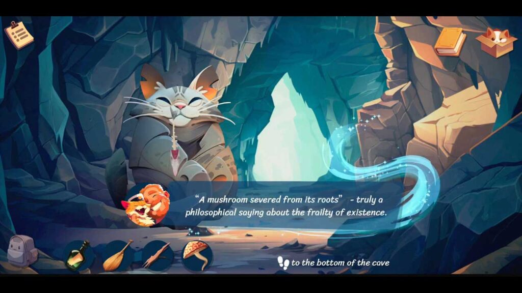 از آنجایی که Cloud Cats Land یک بازی اشاره و کلیک است، معماهای زیادی را شامل می شود که این معماها واقعا زیبا و خلاقانه طراحی شده اند، اما گاهی اوقات آنقدر غیرمنطقی هستند که مغزم از کار میافتد. مثلا در بخشی از بازی، شما یک غار با آتش پیدا میکنید و فکر میکنید، “من از آن برای روشن کردن موشک استفاده میکنم.” منطقی، درست است؟ اما نه. بازی میگوید: “اوه نه، راه حل چیز عجیب دیگری است که اصلاً منطقی نیست.”
