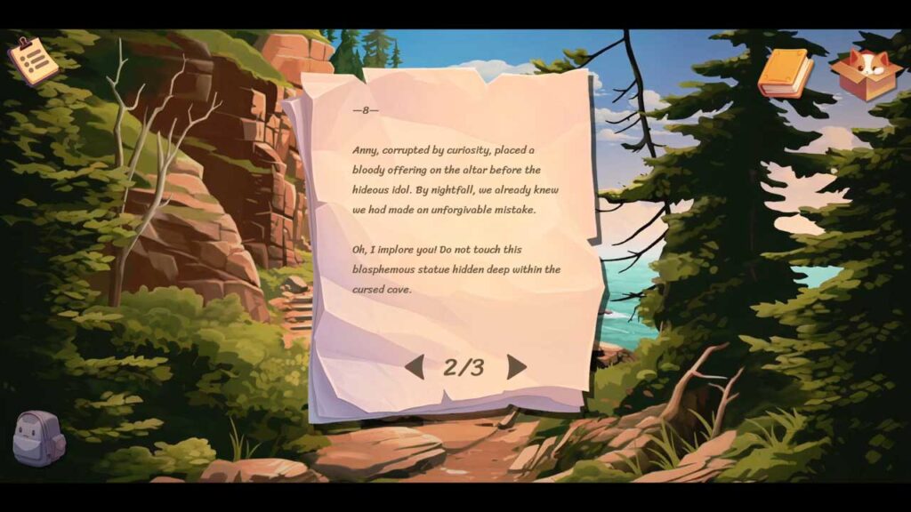 ماموریت شما این است که به یک فانوس دریایی برسید و سعی کنید صاحب خود را پیدا کنید. اما در طول مسیر، یادداشتهای معمایی ظاهر میشوند که از یک تهدید تاریک در اطراف جزیره میگویند. شما بین “اوه، به آن گربه بامزه با کلاه نگاه کنید” و “کمک، اوضاع اینجا بالاخره بد خواهد شد” گیر کردهاید. این ترکیبی بینظیر از راحتی و رمز و راز است که به خوبی در ساختار روایت بازی تنیده شده است.