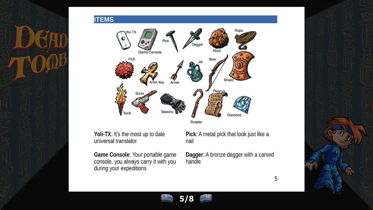 اگر یک گیمر امروزی هستید و تاکنون موفق به تجربه یک بازی کنسول قدیمی و خاطره انگیز NES نشدید، بازی Dead Tomb به خوبی می تواند شما را به آن دوران قدیمی بازگرداند و خاطرات خوب بازیهای گذشته را احیا کند. اگر هم گیمر قدیمی هستید، این بازی نگاهی اجمالی به روزهای کودکی است و در حالی که دستاوردها خیلی راحت ارائه می شوند، گیم پلی و چالش مرتبط با آن همان چیزی است که به دنبالش هستید. این بازی به خوبی می تواند شما را به دورانی بازگرداند که ببینید صنعت بازی قبل از پیدایش گرافیک های امروزی چگونه بوده است.