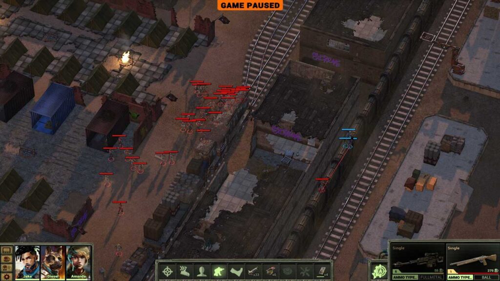 حال به گیمپلی می پردازیم و راستش را بخواهید، باید انتظار داشته باشیم که این نوع بازیها چالشبرانگیز باشند و مطمئناً همین است: در واقع، فکر میکنم کسی باید یک فرهنگ لغت با زیرخط کلمه «آسان» به دفتر توسعهدهنده ببرد، چون سختی بازی اصلاً آسان نیست. این یک مانع بزرگ در ورود به Dustwind: Resistance است، زیرا تفاوت بین آموزش (به اصطلاح آموزش) مانند برخورد با یک دیوار آجری است. دشمنان مانند اسفنجهای گلوله هستند و به سختی می میرند، در حالی که جیک و دیزل به نظر از جنس چینی هستند، زیرا به راحتی میمیرند. آسیب وارد شده نیز به نظر نمیرسد از طریق رابط کاربری ثبت شود، که منجر به برخی مرگهای آزاردهنده میشود.