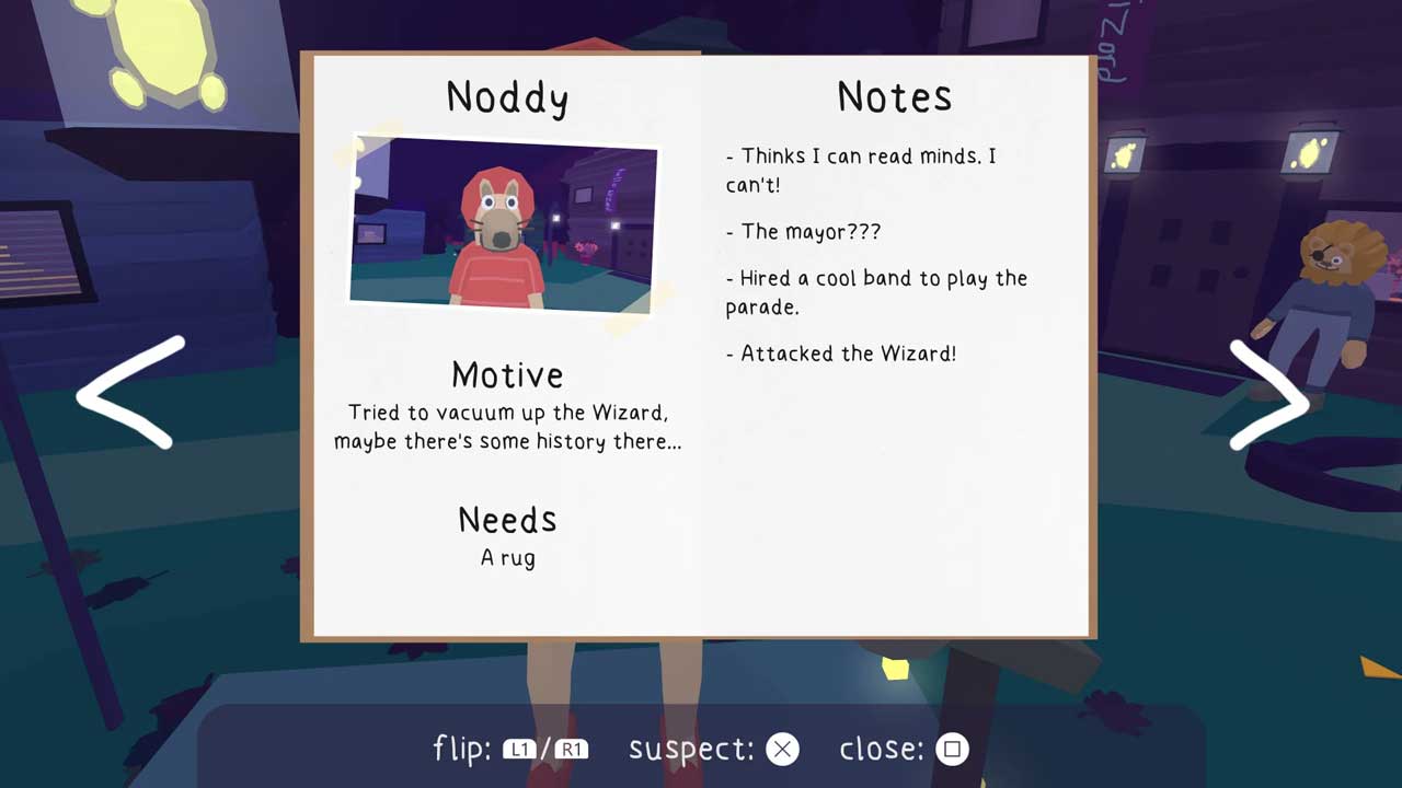جنبه های بذله گویی واقعاً همان چیزی است که سری بازی های Frog Detective را خاص جلوه می دهد. پرونده هایی که بررسی می کنید، همیشه کاملاً پیش پا افتاده هستند و فقط به حال و هوای جذاب بازی می‌افزایند. پرونده اول شامل یافتن این است که آیا یک جزیره، خالی از سکنه شده است یا خیر و بلافاصله متوجه می شوید که حاکم منطقه، کتاب های زیادی برای شکار ارواح خوانده است و فقط از صدایی در شب ترسیده است. مورد دوم شامل جستجوی یک جادوگر نامرئی است که از لحظه ورود شما به دهکده در خانه ای در معرض دید عموم نشسته است.