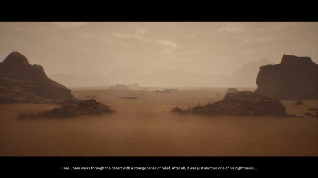 من نمیخواهم چیز مهمی را اینجا لو بدهم زیرا Luto سعی میکند تا پایان، رمزآلود باقی بماند. اینکه راوی کیست؟ صدای آن طرف تلفن متعلق به چه کسی است؟ و ماجرای بیابان چیست؟ همه اینها به مرور زمان توضیح داده میشود و داستانی را میبینیم که با آنچه انتظار دارید، متفاوت است. Luto کار فوقالعادهای در داستانسرایی محیطی انجام میدهد، با یادداشتها و نقاشیهایی که داستان را با پایانی رضایتبخش به هم پیوند میدهند.