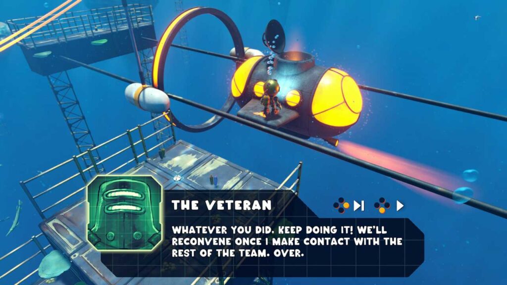 بعد از اتمام آموزش، ممکن است وسوسه شوید که فکر کنید، “این یک بازی خیلی آسان است.” اما وقتی بازی واقعی را شروع میکنید، همه چیز به سرعت پیچیدهتر میشود. مراحلی که برای انجام وظیفه خود باید تکمیل کنید، ممکن است همه واضح یا شهودی نباشند، بنابراین آماده باشید تا از تفکر جانبی استفاده کنید. هدف نهایی در هر سطح، حل معماهای محیطی – چرخاندن اهرم سمت راست، حرکت دادن گویها به مکان مناسب و غیره – برای بازیابی قدرت است. وقتی این کار را انجام دادید، بازی وسیله نقلیه شما را نشان میدهد که این یعنی میتوانید به شاتل زیردریایی خود برگردید و برای روشن کردن آن به مرحله بعدی بروید.