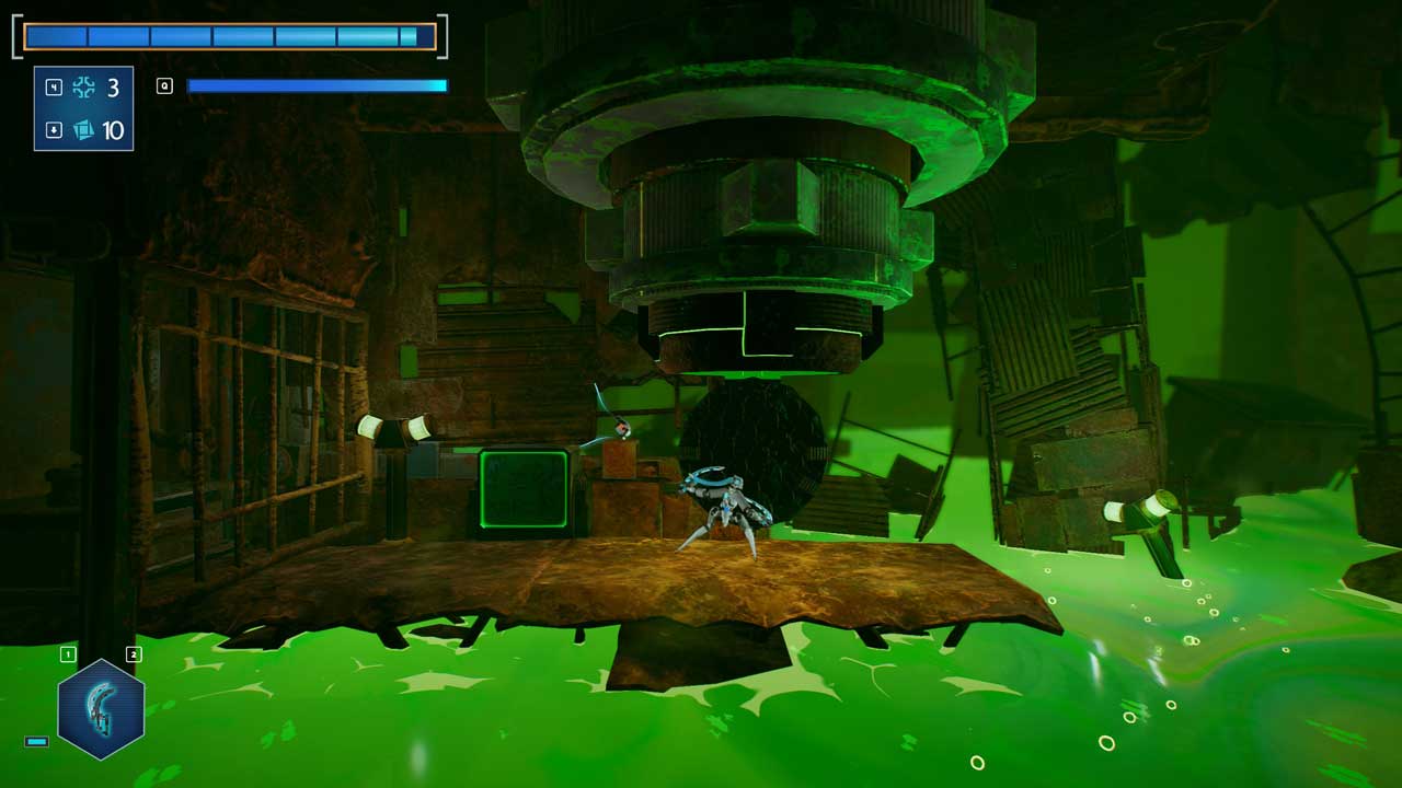 همچنین یک سیستم ارتقای منحصر به فرد وجود دارد که در آن از بلوک های تتریس مانند برای بهینه سازی توانایی های ربات خود استفاده می کنید. این سیستم در مقایسه با مکانیک های ارتقاء معمول در بازی های مشابه، یک پیچ و تاب با طراوت را نشان می دهد. تعداد زیادی از مهارت ها در واقع مفید هستند، بنابراین شما همیشه باید مهارت هایی را که در آن لحظه نیاز دارید انتخاب کنید. عقب نشینی نیز در این بازی کاملاً تکراری است و دشمنان در مواقعی بیش از حد زیاد می شوند و اجتناب از آنها را دشوار می کند. با این حال، انتقال از یک قسمت از بیوم به قسمت دیگر یک ویژگی بسیار خوب است زیرا در زمان شما صرفه جویی می کند و اگر تعداد آنها بیشتر بود، حتی بهتر است.