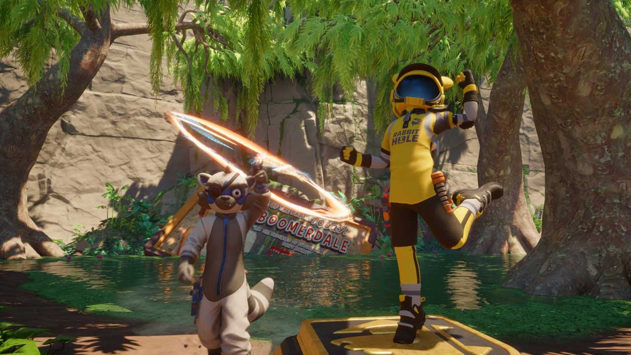 در کنار تواناییهای حرکتی، میتوانید سلاحهای خود را نیز ارتقا دهید، چه سلاح ساده باشد و چه سلاح تهاجمی. تپانچه شما برای مقابله با راکونهای چیبی تقریباً بیخطر کاملاً مناسب است، اما خیلی زود باید بتوانید مانتیسهای تلهپورت و اژدهای یخی پرنده را با شلیک گلوله و خشاب فعال از پا درآورید. برای مقابله با سایر دشمنان به ابزارهای مختلفی نیاز دارید، مانند تفنگ آبپاش که میتوانید آن را با انواع مایعات عنصری و لجنهای لغزنده پر کنید. روشهای فوقالعاده متنوعی برای مقابله با موجودات تهاجمی (یا موجودات غیرفعالی که فقط دوست دارید آنها را بکشید) وجود دارد و آزمایش همه آنها سرگرمکننده است.