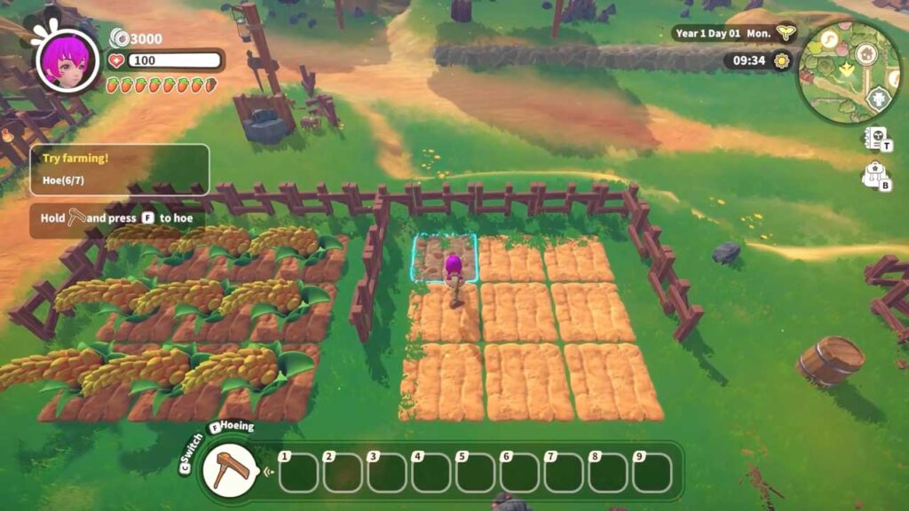 برای مثال در این عنوان بر خلاف برخی بازی های کشاورزی کوله پشتی اولیه شخصیت اصلی شما بسیار بزرگ است. حتی ابزارهای مزرعه نیز کوله پشتی های مستقلی دارند که آن ها نیز نیاز به گسترش دارند، در غیر این صورت باید هر بار که از بازی بیرون می روید، ابزار مزرعه تعیین شده را انتخاب کنید. نقشه بازی خیلی بزرگ نیست. اما نقاط پیمایش زیادی در آن وجود دارد، مهمترین نکته این است که در این عنوان تله پورت هزینه ای ندارد و می توان از آن برای سفرهای سریع در مراحل اولیه استفاده کرد.