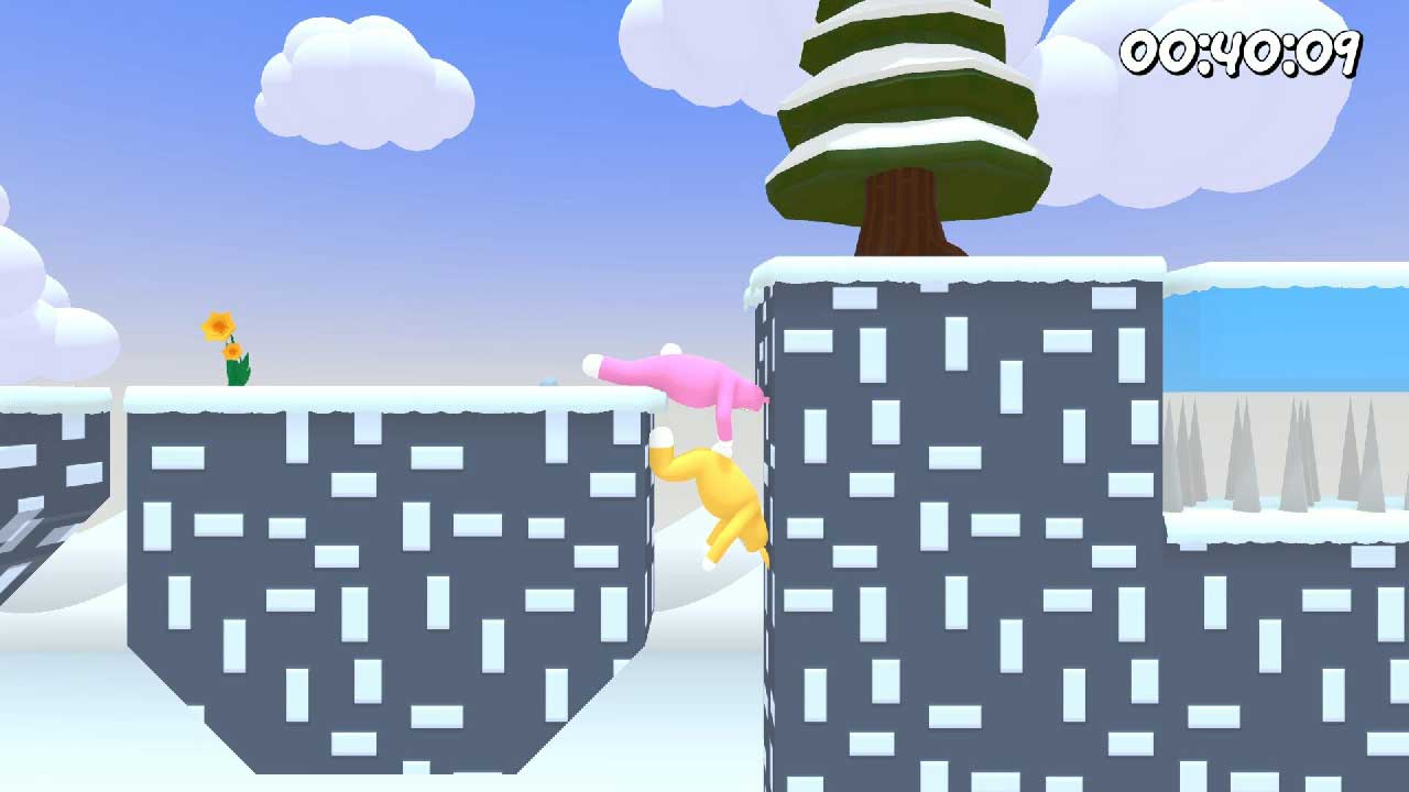 حرکات شما به غلتیدن به جلو یا عقب، پریدن (یا حداقل تلاش برای انجام آن) و گرفتن اشیا یا شریک شما با استفاده از دکمه شانه خلاصه می شود. اما مشکل اینجاست که هیچکدام از اینها آنطور که انتظار دارید کار نمیکند. پرش به زمانبندی دقیقی نیاز دارد تا خودتان را به جلو پرتاب کنید و بیشتر اوقات، به جای آن خود را به عقب پرتاب میکنید. نمی دانم چرا اینطور است، ولی به طرز خندهداری بد است، اما در بازی تک نفره، این تازگی میتواند به سرعت به ناامیدی تبدیل شود، زیرا مکرراً میمیرید و تعجب میکنید که چرا هنوز تلاش میکنید.