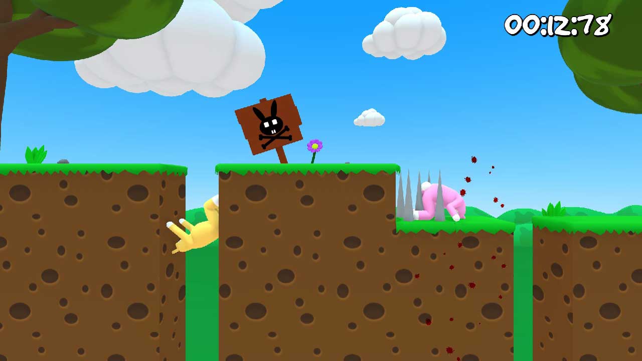 بیایید ابتدا در مورد واضح ترین اشکال این بازی صحبت کنیم: کنترل ها. آنها عمداً ناخوشایند هستند و صادقانه بگویم، این بخشی از سرگرمی (یا عذاب، بسته به صبر شما) است. قهرمان ما که فکر میکنم اسمش Bunny Man است، اغلب ژست عجیبی به خود می گیرد: پاها خم شده و دستها دراز شده، به نظر میرسد که انگار در اواسط جلسه یوگا گیر کرده است.