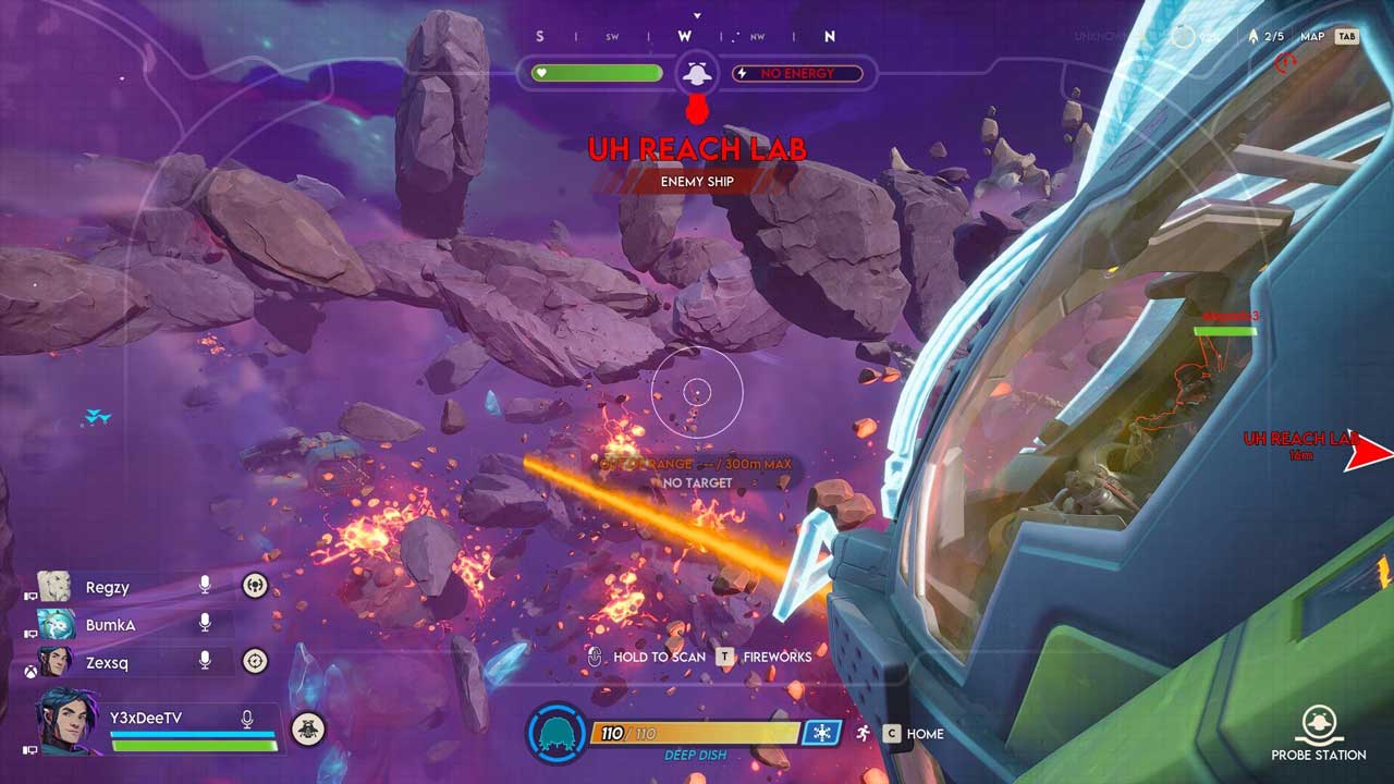 در مورد نبردهای فضایی، این بخش برجسته گیمپلی Wildgate است. وقتی در مقابل سایر بازیکنان قرار میگیرید، میتوانید این کار را به دو روش انجام دهید. میتوانید با کشتی در مقابل کشتی بازی کنید که همکاری بین بازیکنان را تقویت میکند و این همان چیزی است که من واقعاً در این بازی از آن لذت بردم، یا میتوانید برای PvP واقعی سوار کشتی شخص دیگری شوید. یا میتوانید آن را با یک برجک ترکیب کنید و افراد را در حالی که سعی در سوار شدن به کشتی شما دارند، از بین ببرید. این بسیار سرگرم کننده است، زیرا یک شلیک باعث میشود شخص دیگر فوراً ناپدید شود. کشته شدن در طول گیمپلی فقط به این معنی است که شما در عرض چند ثانیه دوباره ظاهر میشوید. اگر کشتی شما نابود شود، به این معنی است که بازی برای شما و خدمه شما به پایان رسیده است.