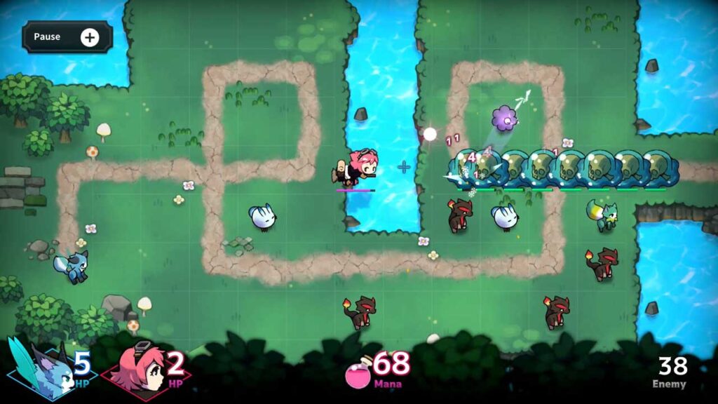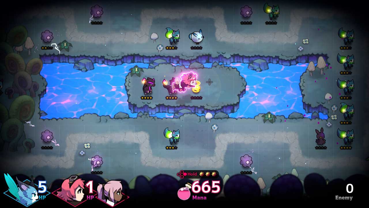 خوشبختانه تیا قابلیت پرواز دارد و به کمک جاروی خود پرواز می کند و نه تنها می تواند برجها را بسازد یا ارتقا دهد، بلکه می تواند به طور فعال به سمت هیولاها شلیک کند. شما در هر مرحله می توانید تعدادی برج بسازید که به طور پیش فرض، آنها فقط می توانند سطح اول باشند و به مرور زمان آنها را ارتقا می دهید. در صورت پیشروی در بازی پاداش های مداوم به شما داده می شود که برای عرضه و تقاضای کالاهای داخل بازی (طلا) ضروری است.